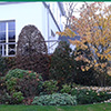Le choix de végétaux de grandes tailles aux abords des façades a permis de bien assoir la maison sur le terrain tout en rééquilibrant les proportions.